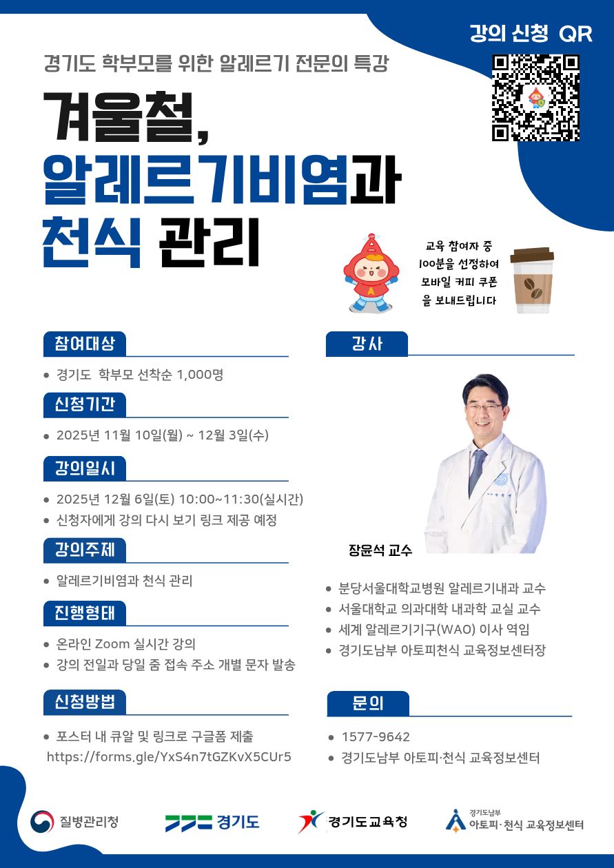 경기도 학부모 대상 알레르기 비염 및 천식 전문의 온라인 특강 안내